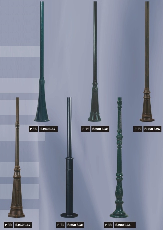 Postes e pés para candeeiros de jardim. Diferentes modelos e tamanhos ajustáveis às suas necessidades