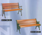 Bancos de jardim, cata-ventos,