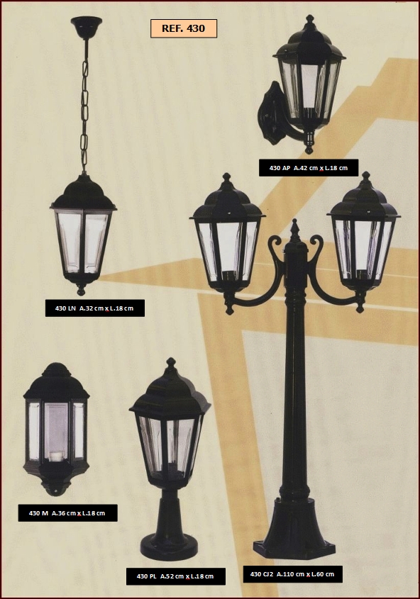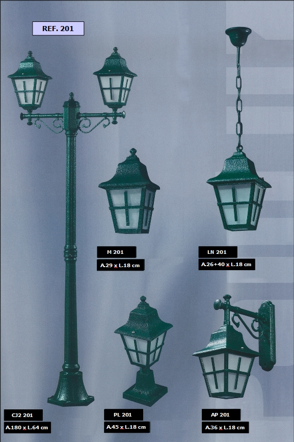 constituídas por candeeiros de pé alto, balizadores, apliques, lanternas e