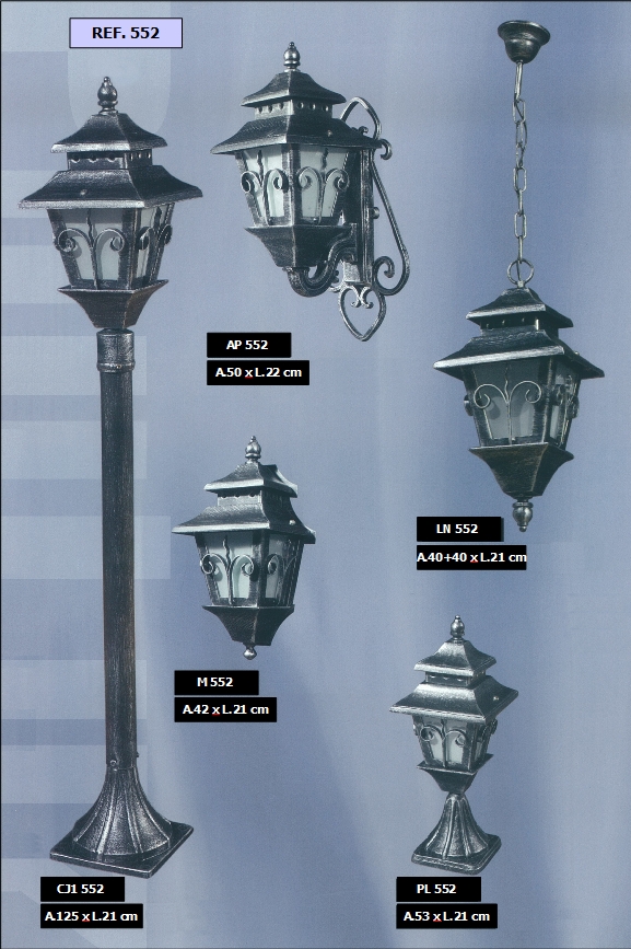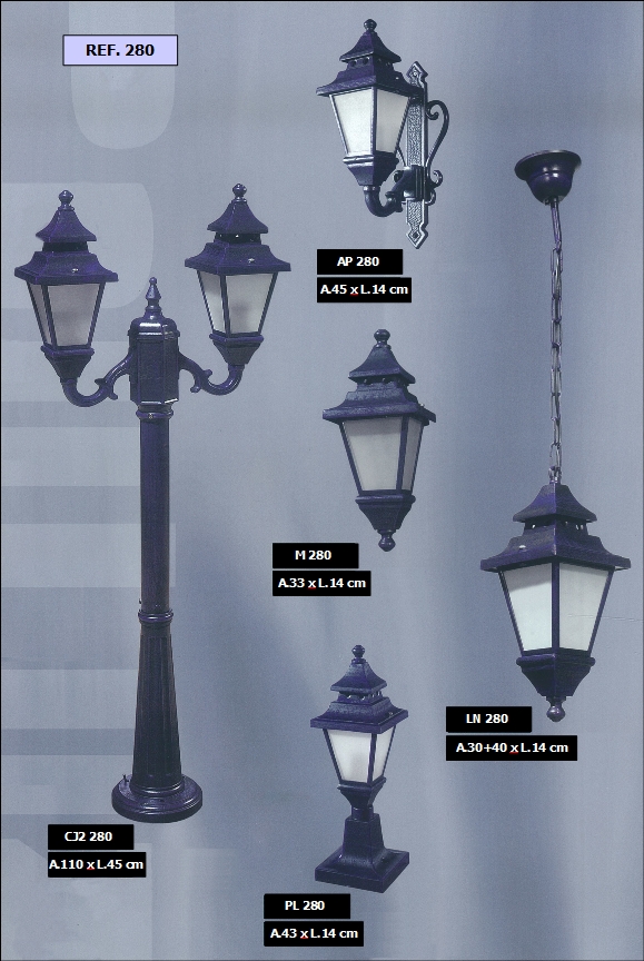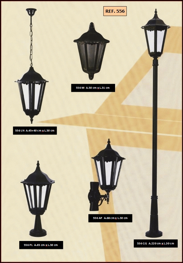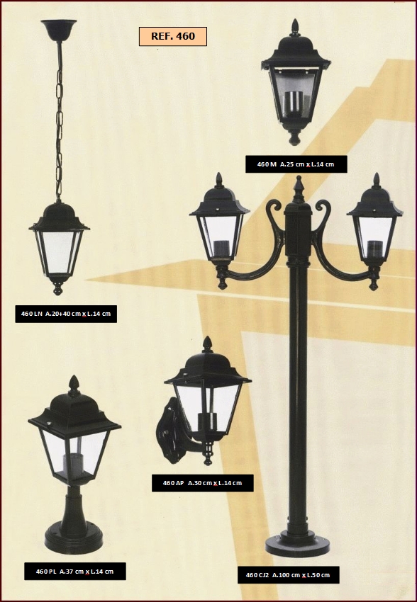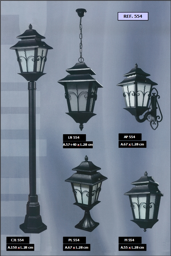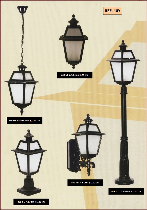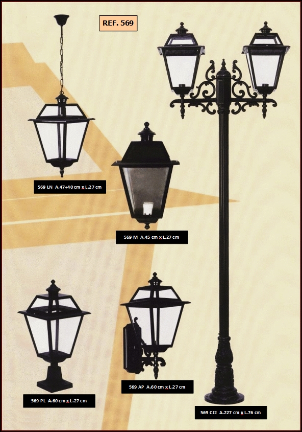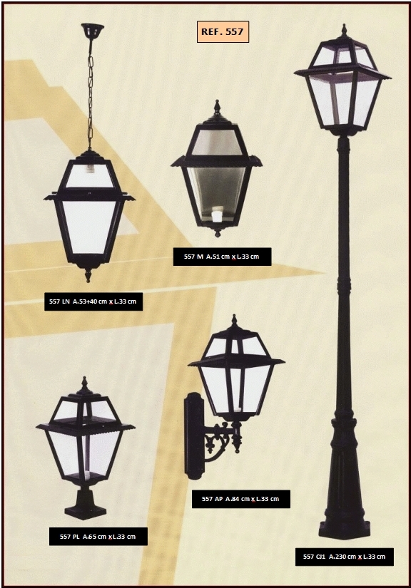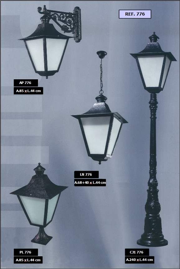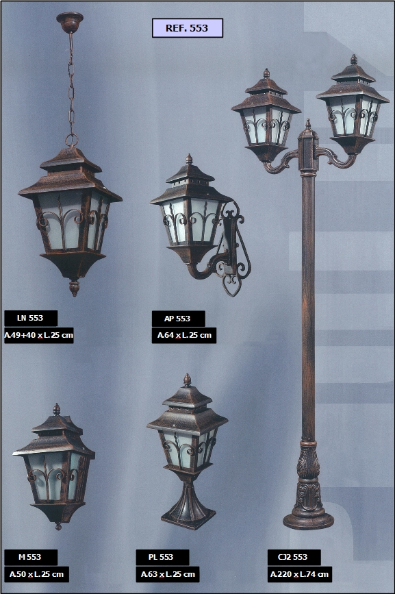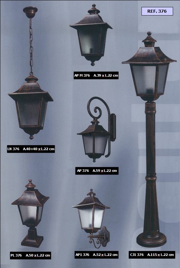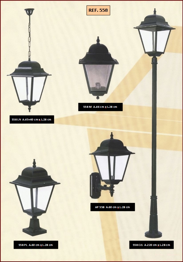 bem como diferentes combinações de colunas e luminárias dos candeeiros.