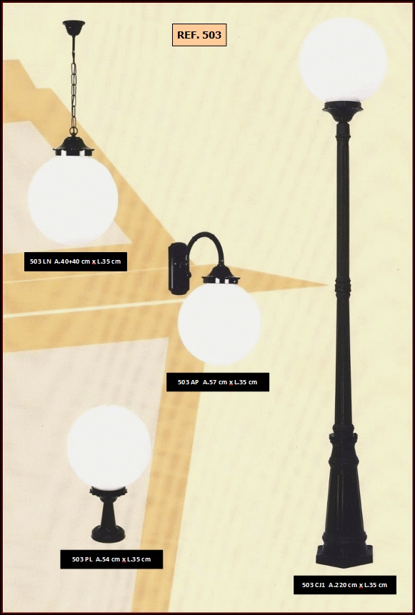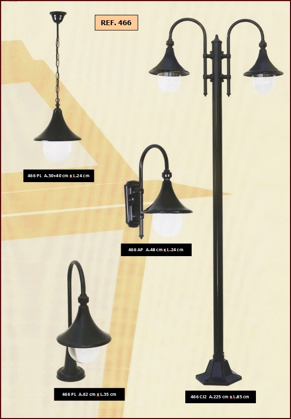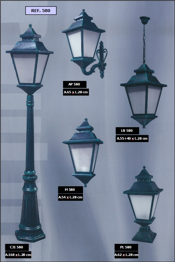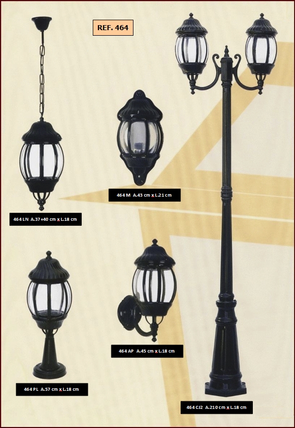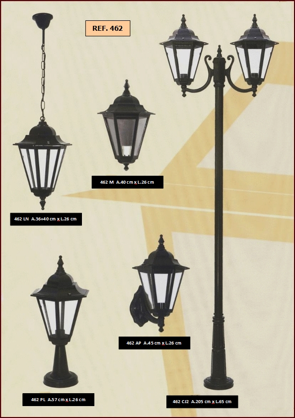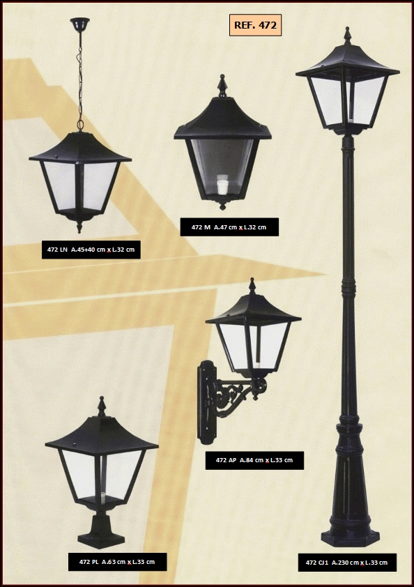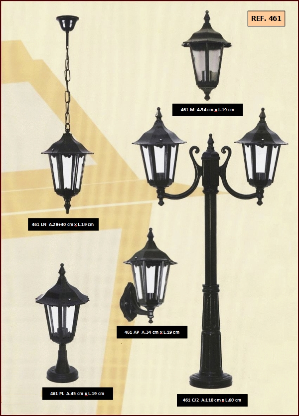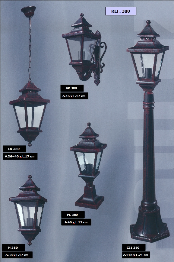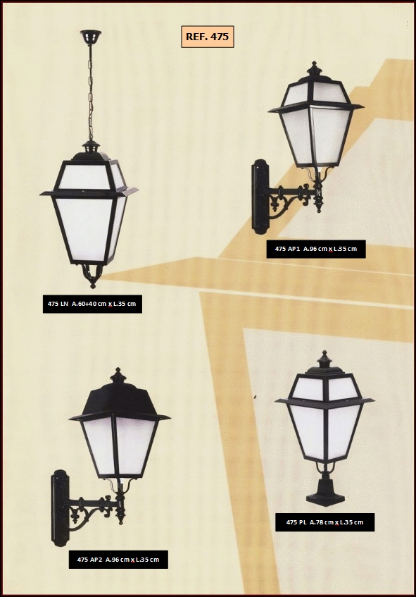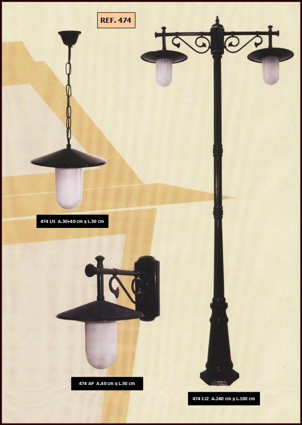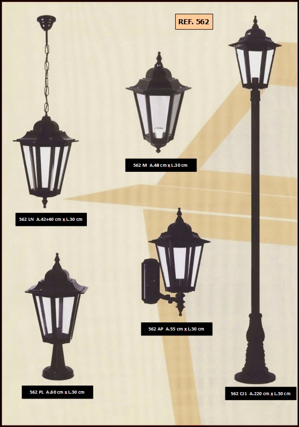 bem como diferentes combinações de colunas e luminárias dos candeeiros.